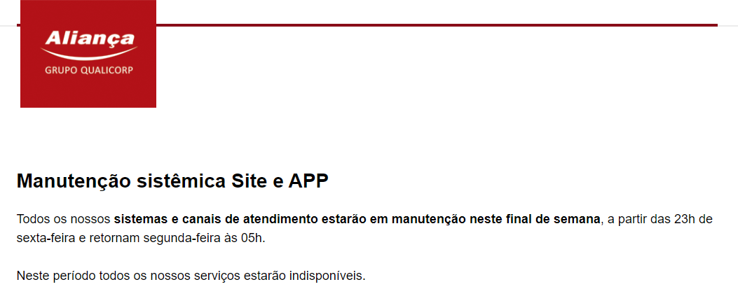 4) A disponibilização do portal aos usuários não tem prazo de duração, podendo a Aliança Administradora, a qualquer momento, dar por terminada, suspender ou interromper unilateralmente, sem necessidade de prévio aviso, a prestação das informações do portal.